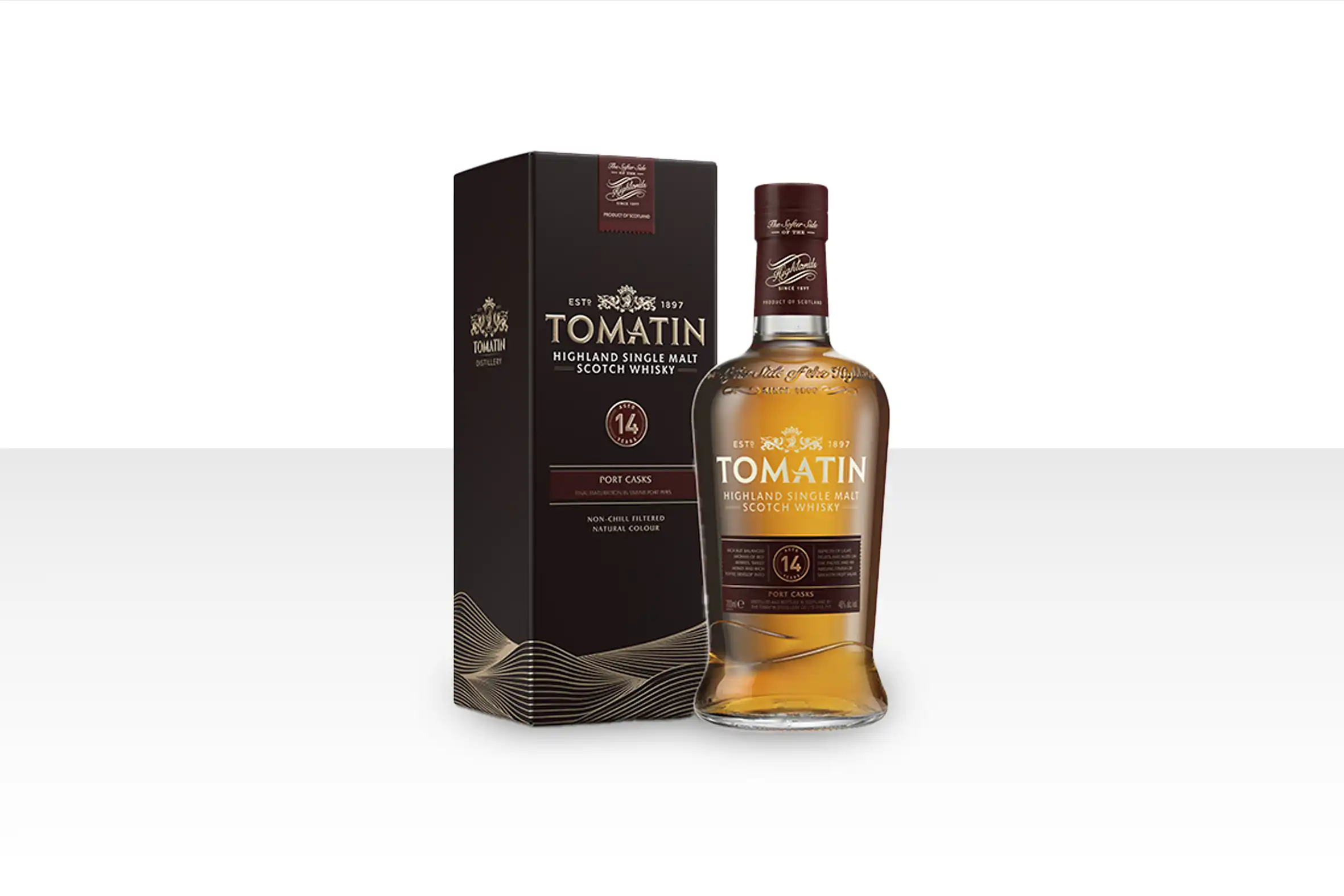 Tilføjet til sortimentet i 2014. Efter at have lagret i traditionelle egetræs fade, får denne 14 års Tomatin en port-finsh i op til 18 måneder. En blød og lækker whisky med tydelig sødme fra portvins fadet.