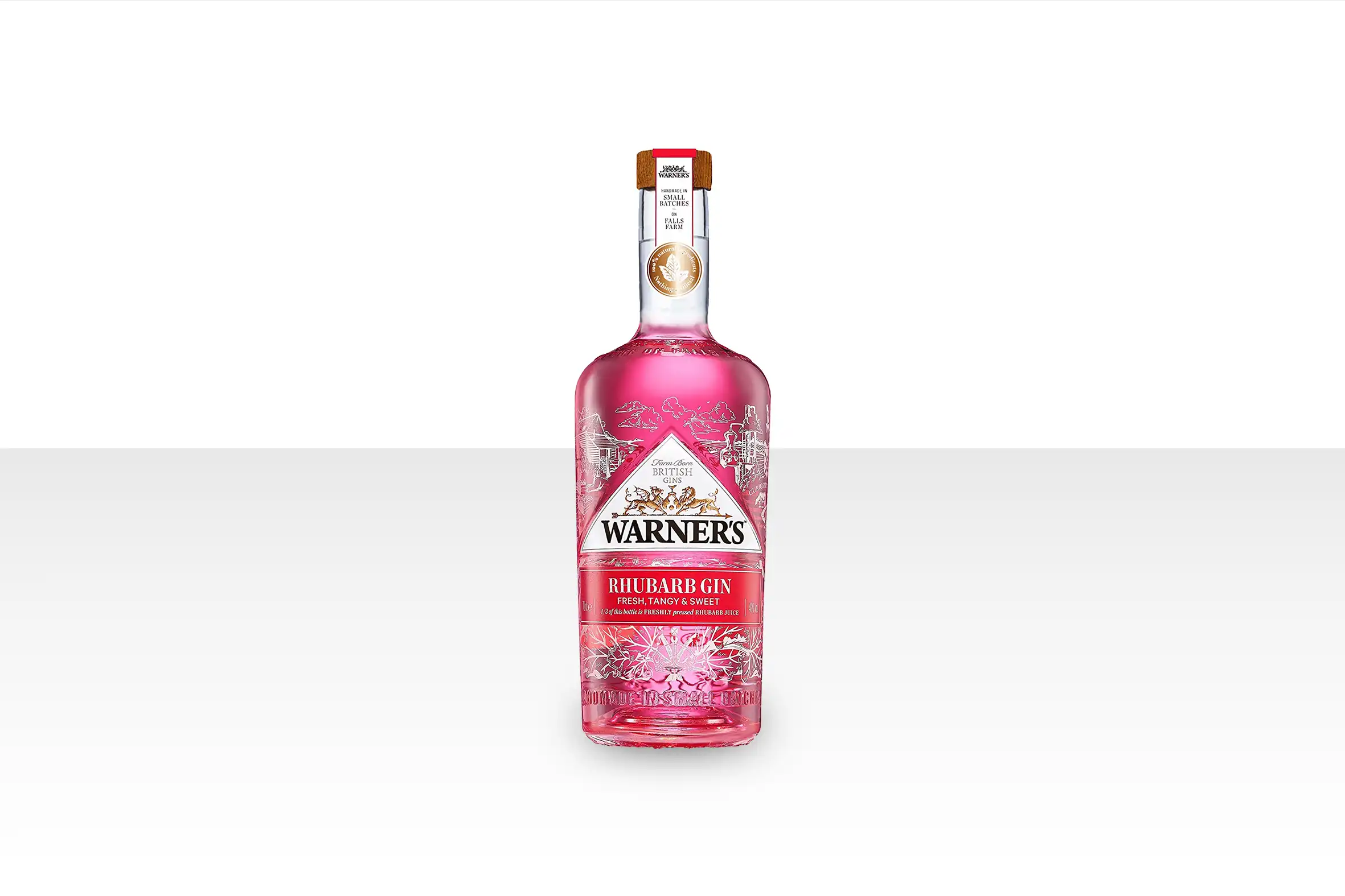 Denne frugtgin fra Warner’s er verdens første rabarbergin; og en hel tredjedel af flaskens indhold er ren og skær saft fra friskpressede rabarbere. Det er ikke nogen let sag at samle nok rabarbersaft til en hel batch: Det kræver utroligt meget arbejde – og rigtigt, rigtigt meget rabarber. Derudover kan flasker fra forskellige batches godt ende ud med ret forskellige kulører: Dette skyldes, at rabarber indeholder anthocyaniner – en gruppe farvestoffer, hvis kosmetiske effekter kan være ganske uforudsigelige.